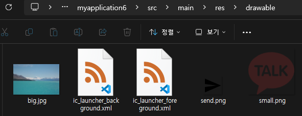 drawable 디렉토리의 big.jpg, small.png, send.png 파일을 res/drawable 디렉터리에 복사합니다. 또한 layout/activity_main.xml 파일을 res/layout 디렉터리에 복사해 이전 파일을 대체합니다.