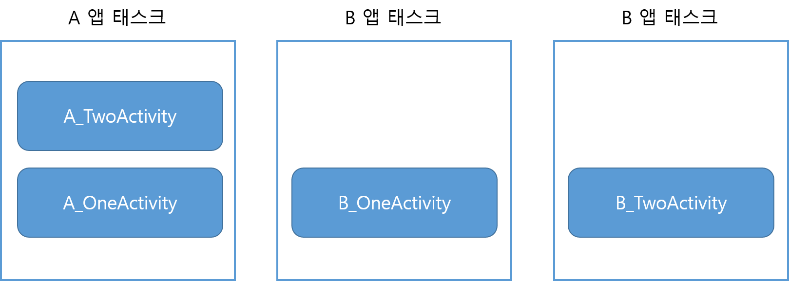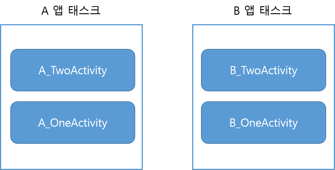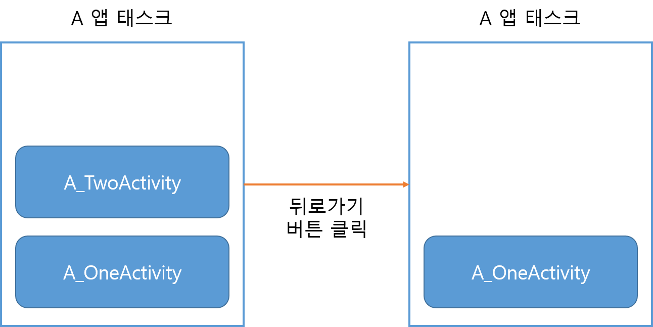 액티비티는 화면을 구성하는 컴포넌트입니다. 따라서 한 액티비티에서 다른 액티비티를 인텐트로 실행하면 화면이 전환됩니다. 이때 고려할 사항이 있습니다. 어떤 액티비티가 다른 액티비티를 실행해 화면이 전환되었을 떄 의도에 따라 화면을 되돌리거나 되돌리지 않을 수도 있습니다.
