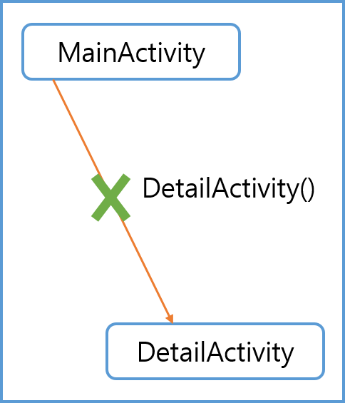한 앱에 MainActivity와 DetailActivity가 있다고 가정해봅시다. MainActivity가 실행되고 나서 DetailActivity로 화면을 전환한다면 DetailActivity 클래스의 객체를 생성해서 실행하면 될 것 같습니다. 하지만 DetailActivity가 안드로이드의 컴포넌트 클래스라면 개발자가 코드에서 직접 생성해서 실행할 수 없습니다. 컴포넌트 클래스는 시스템이 생성해서 실행하는 클래스이므로 개발자가 작성하는 코드로 생명주기를 관리할 수 없습니다.